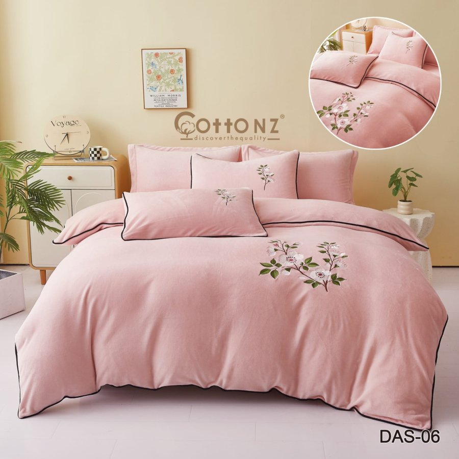 طقم ملاحف مخمل تطريز يشمل 6 قطع للمزوج و4 قطع للمفرد