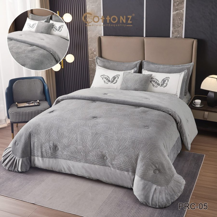 طقم لحاف مخمل حفر معبى وجاهز يشمل 7 قطع